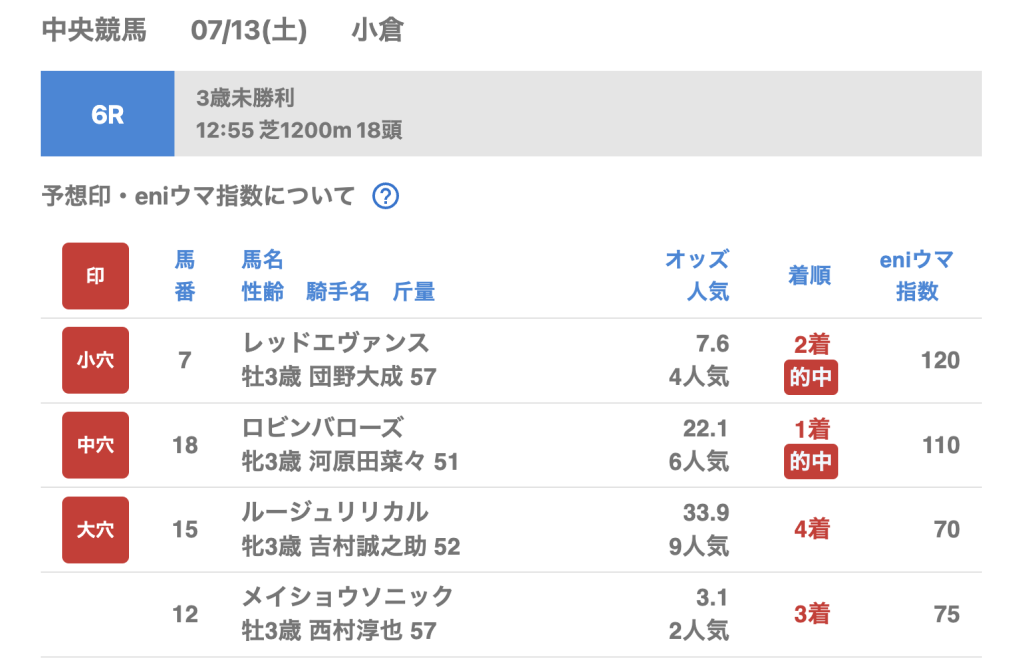 7月13日 小倉競馬場 6R