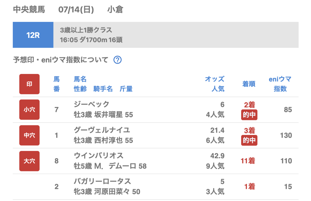 7月14日 小倉競馬場 12R