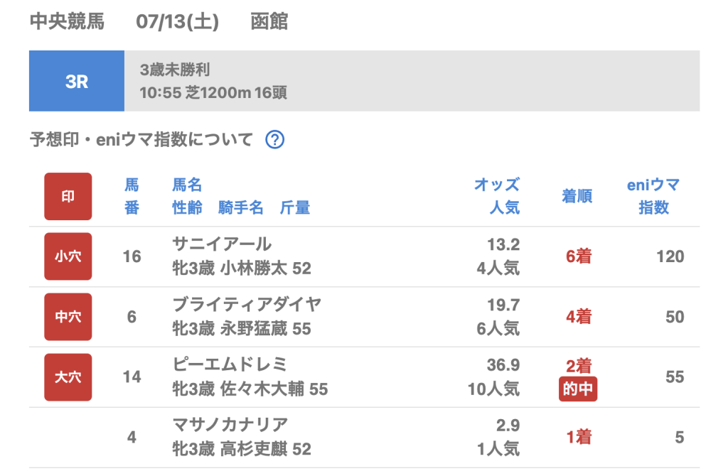 7月13日 函館競馬場 3R